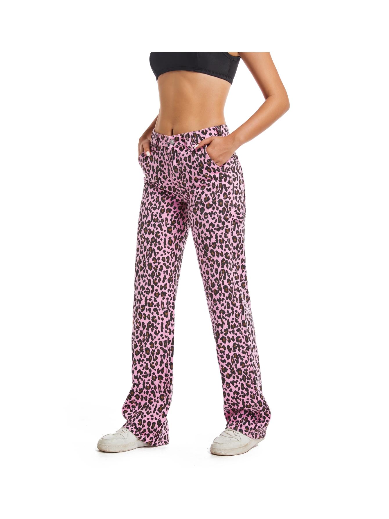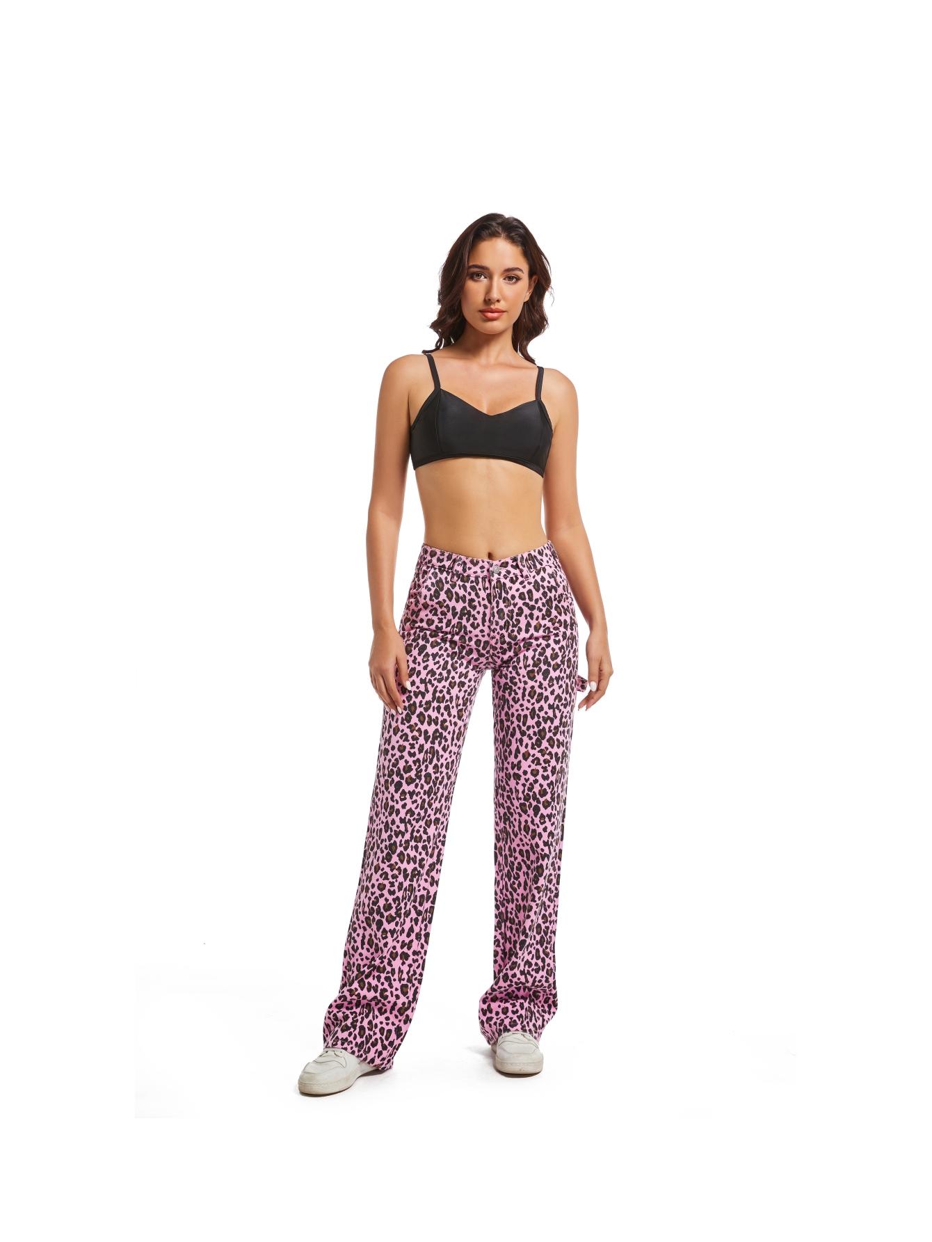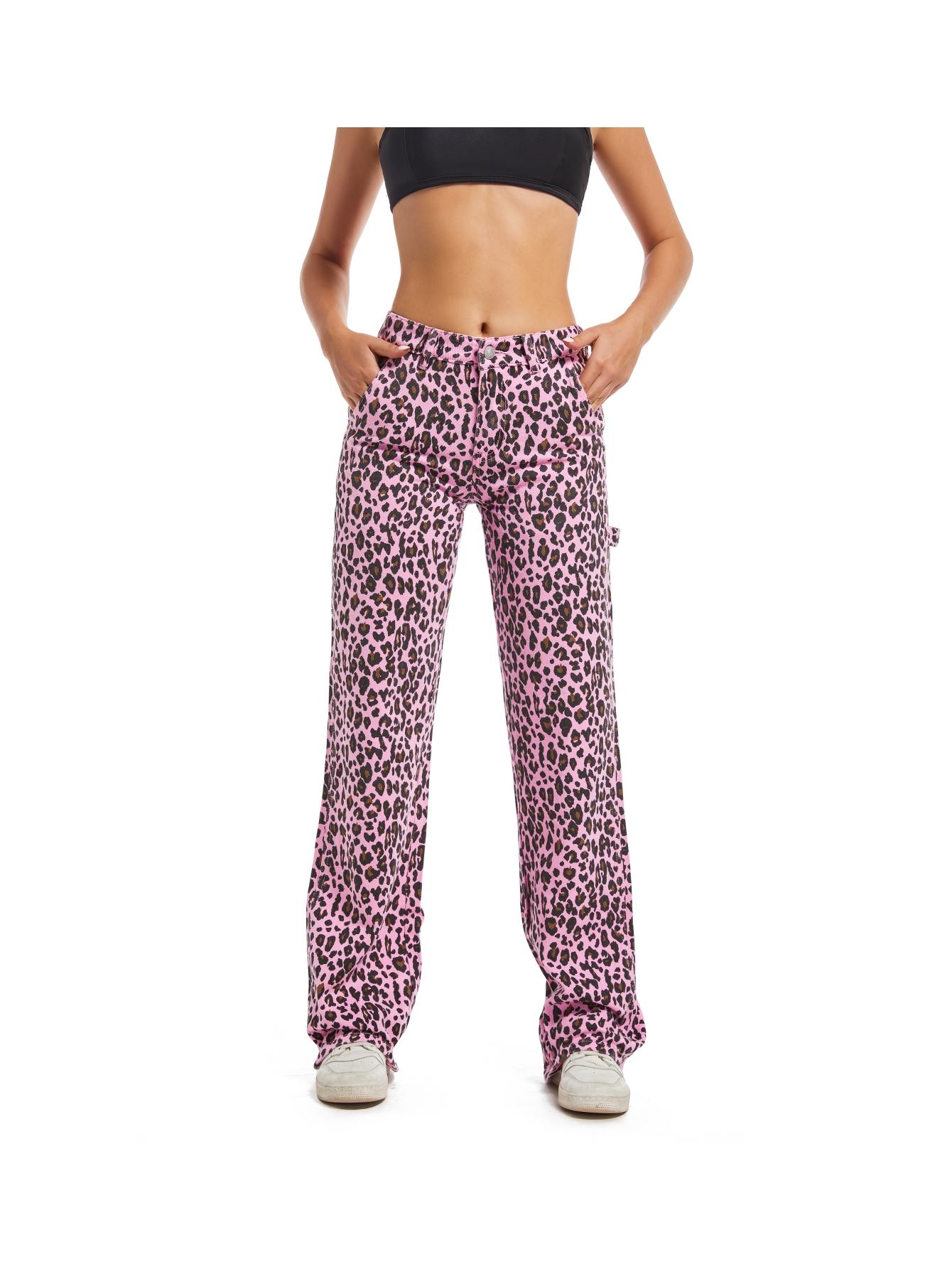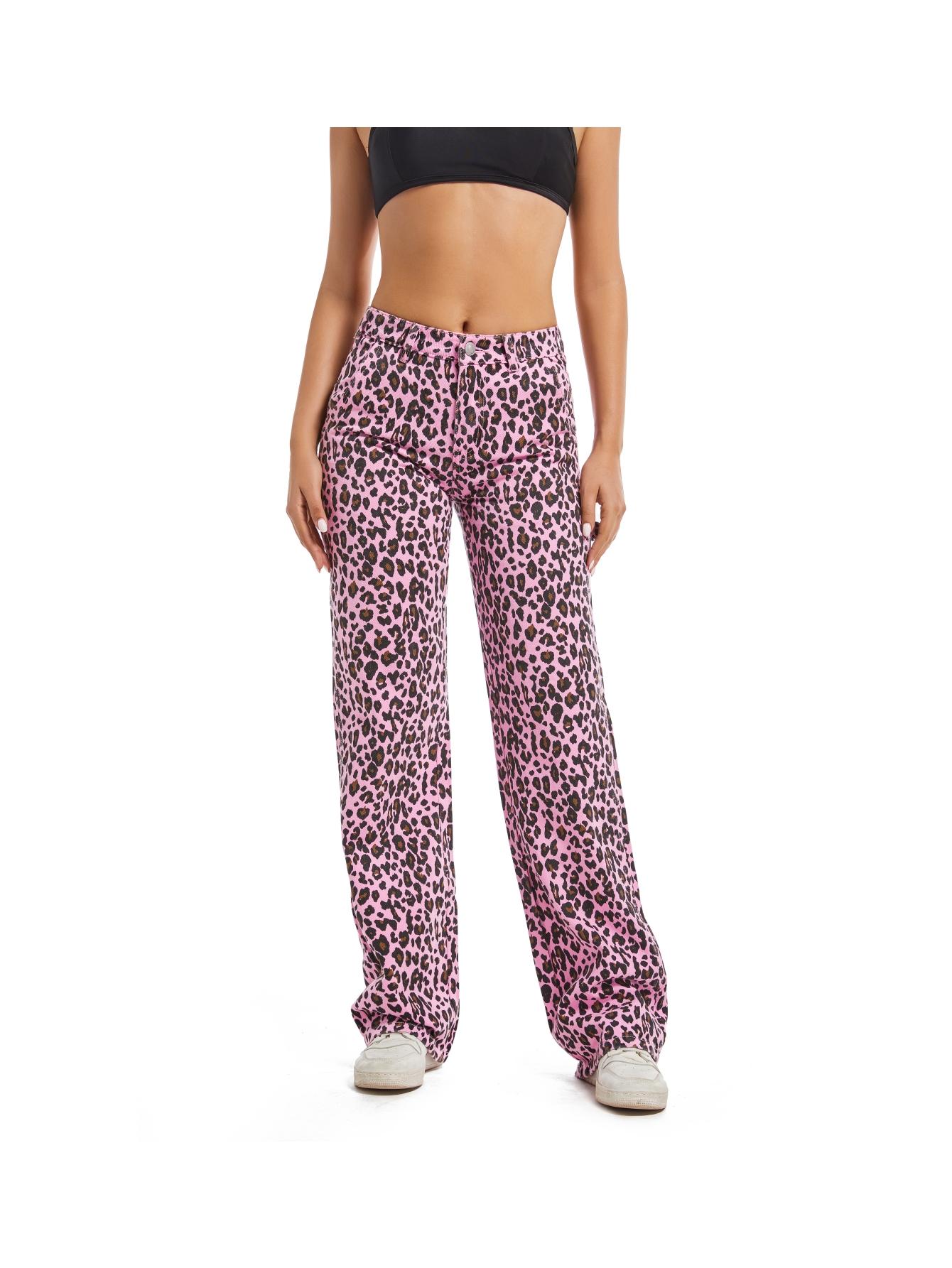 PinkyMoor Pink Leopard Print Jeans Wide Leg Pants Womenswear Trouser cheetah print