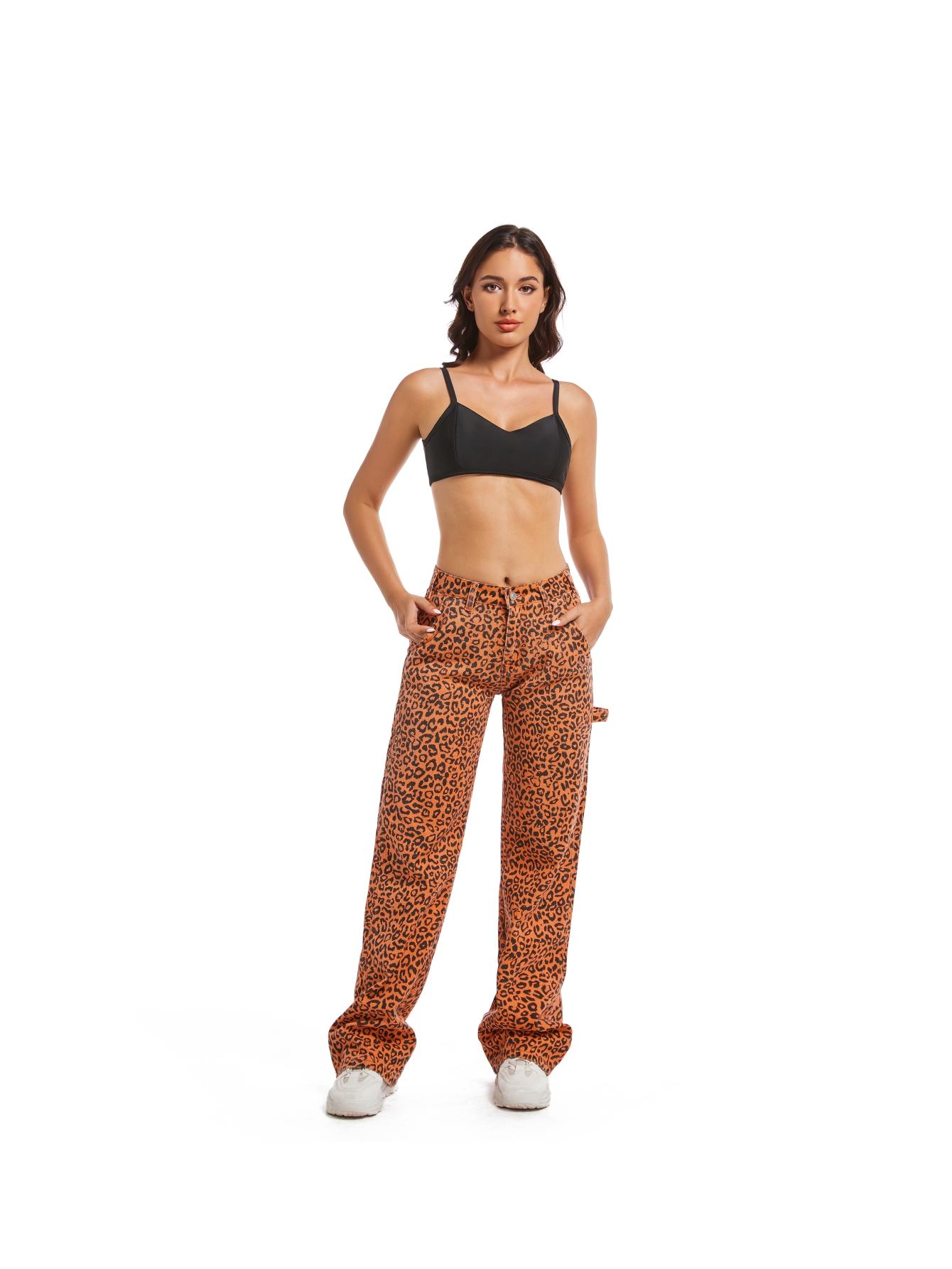 Available in 6 colors, these stylish leopard jeans feature wide legs, low rise, and side pockets. The loose fit and zipper add a casual yet chic vibe. Raw edge details enhance the rugged appeal. Perfect for daily wear or dressing up, pair them with tank tops or sneakers.