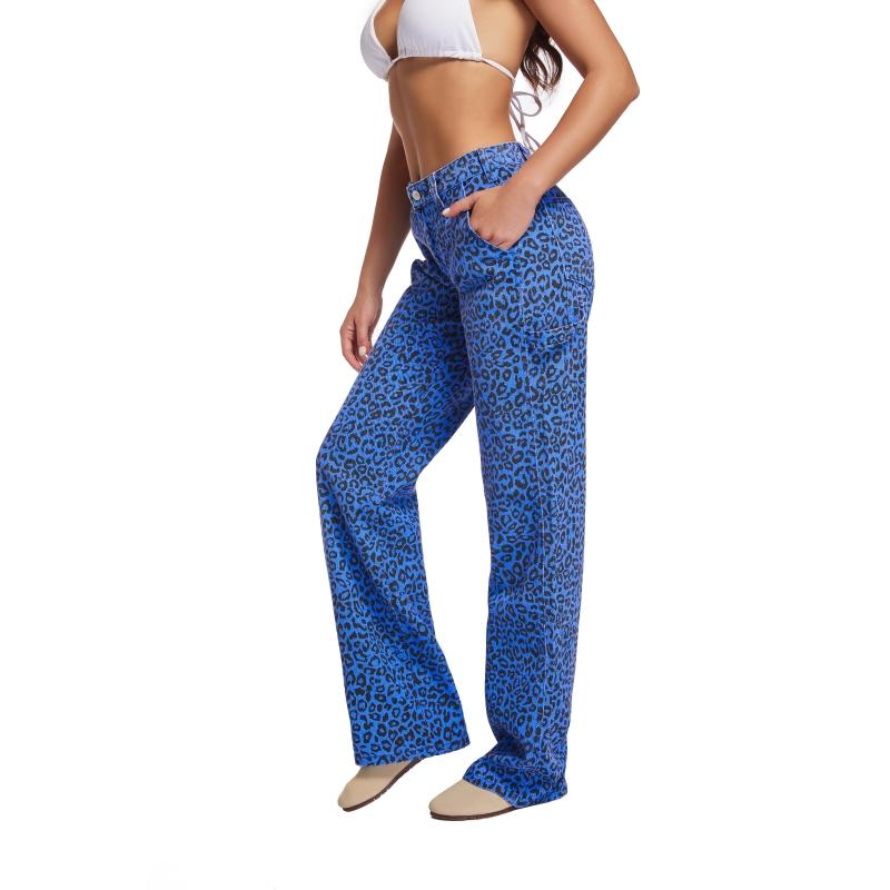 Product Name: Women's Straight Blue Leopard Print Jeans